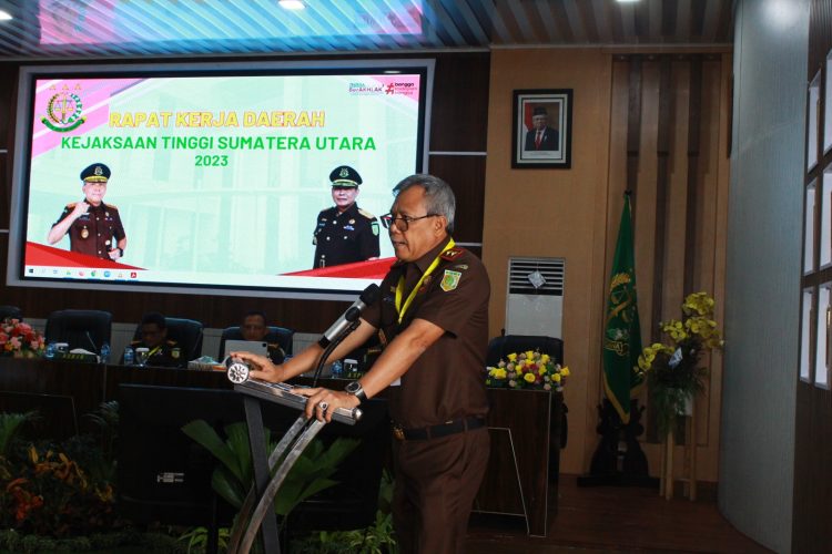 Kejaksaan SE Sumut terdiri dari tingkat Kejati Sumut, Kejari dan Cabang Kejari (Cabjari) di Sumut mengadakan Rapat Kerja Daerah (Rakerda) Tahun 2023 selama dua hari Senin – Rabu (18/12-2023 s/d 19/12-2023) di Aula Sasana Cipta Kerta Lantai 3 Kantor Kejati Sumut Jalan AH Nasution Medan.