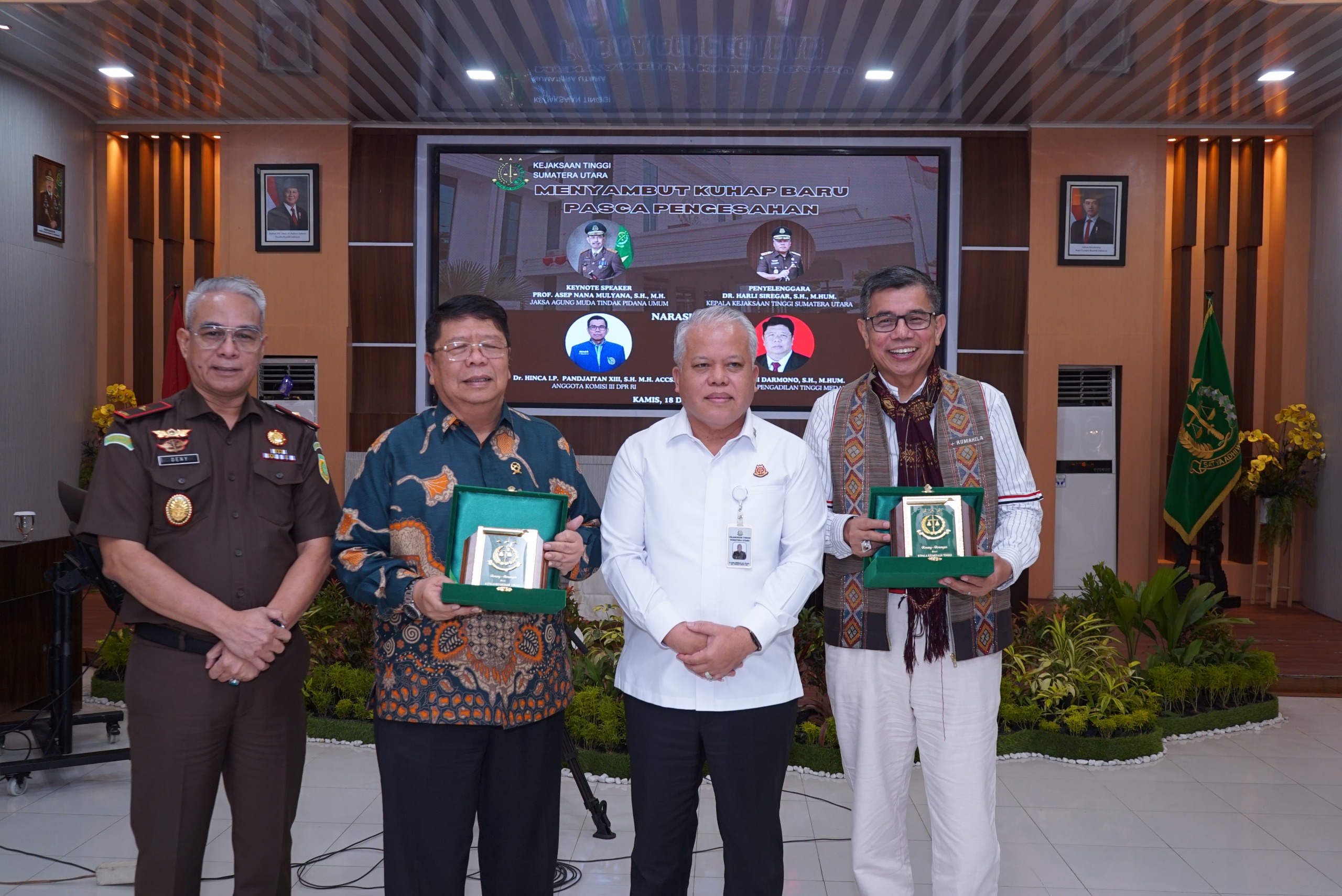 Anggota DPR RI Hinca Panjaitan, mengapresiasi kegiatan tersebut yang menurutnya menunjukkan keseriusan dan kesiapan Kejatisu menyongsong pemberlakuan KUHP dan KUHAP baru.