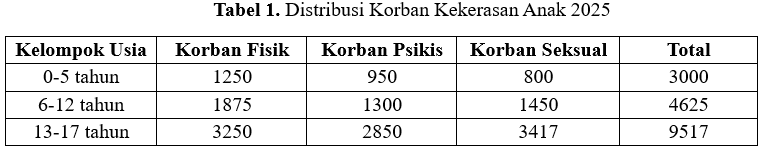 [10] Polri. (2025). Statistik kasus kekerasan anak Januari–Juni 2025. Jakarta: Divisi Humas Polri.
