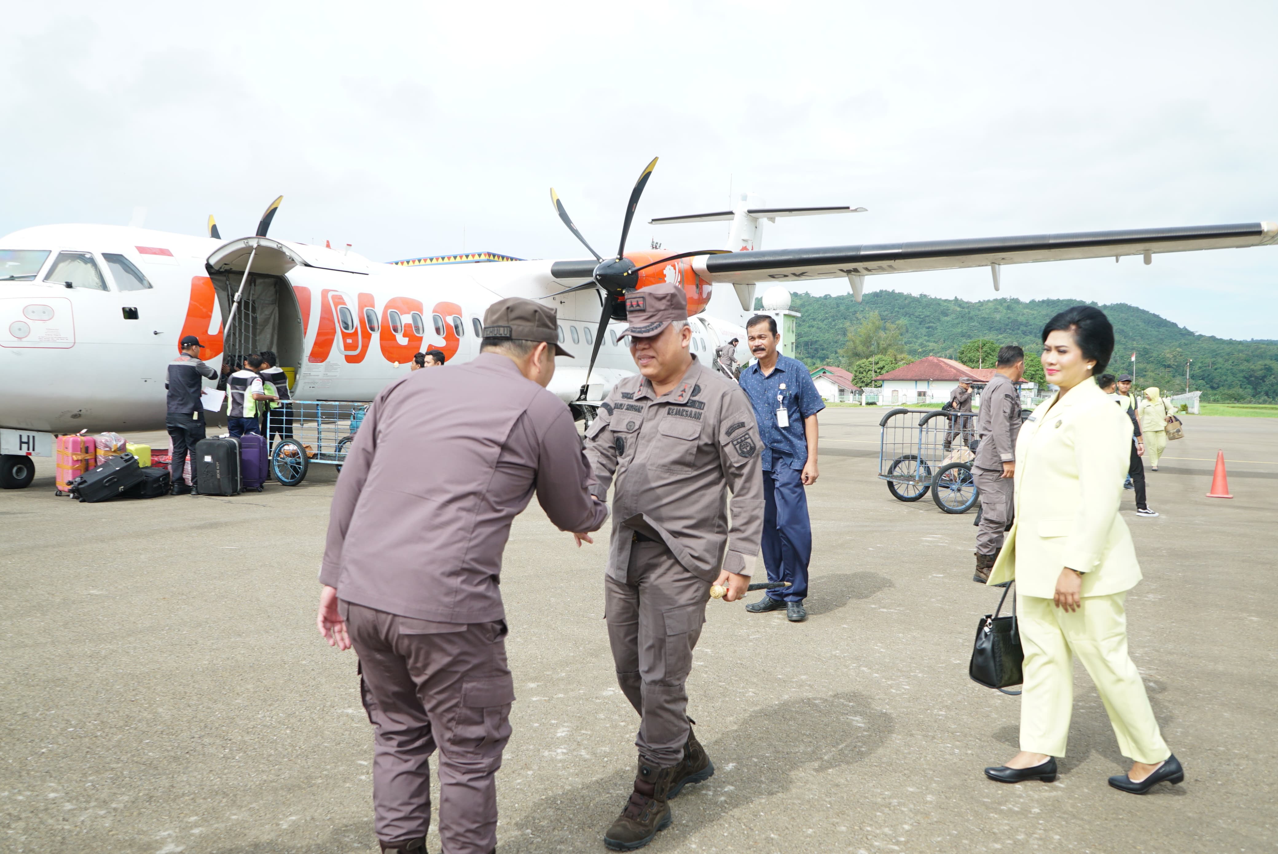 Rombongan Kajati pun disambut dengan baik oleh Kajari Gunungsitoli Parada Situmorang SH MH dan Kajari Nias Selatan Edmon Purba SH MH, beserta jajarannya di Bandara Binaka, Selasa (7/10/2025).
