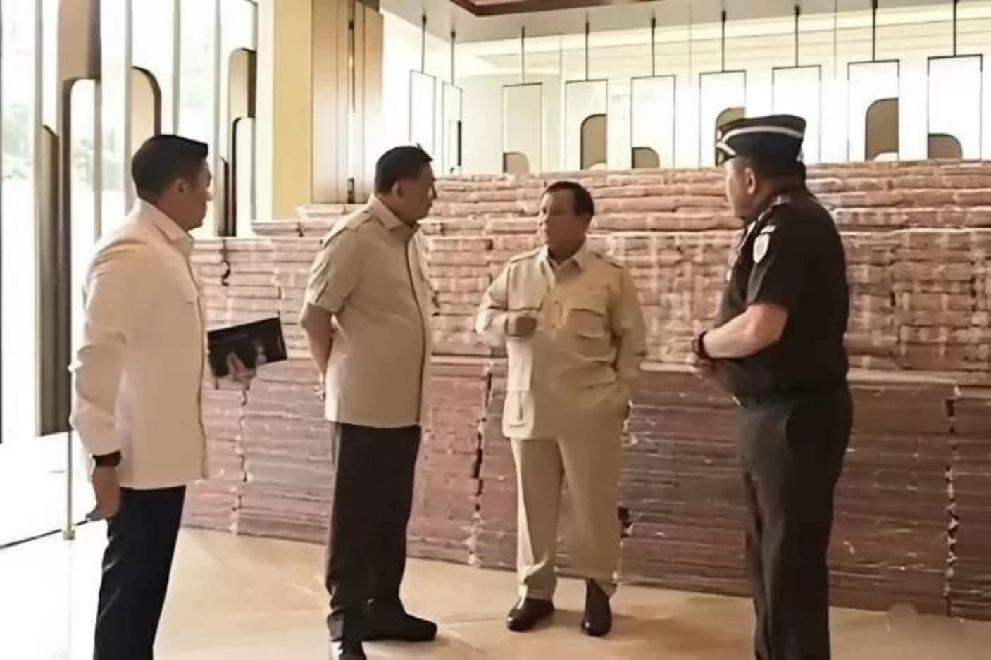 Prabowo sempat berdiri di depan tumpukan uang senilai Rp 13 triliun,